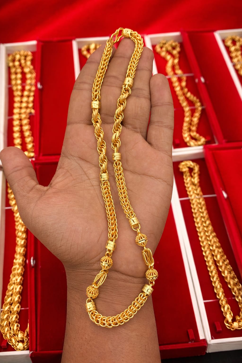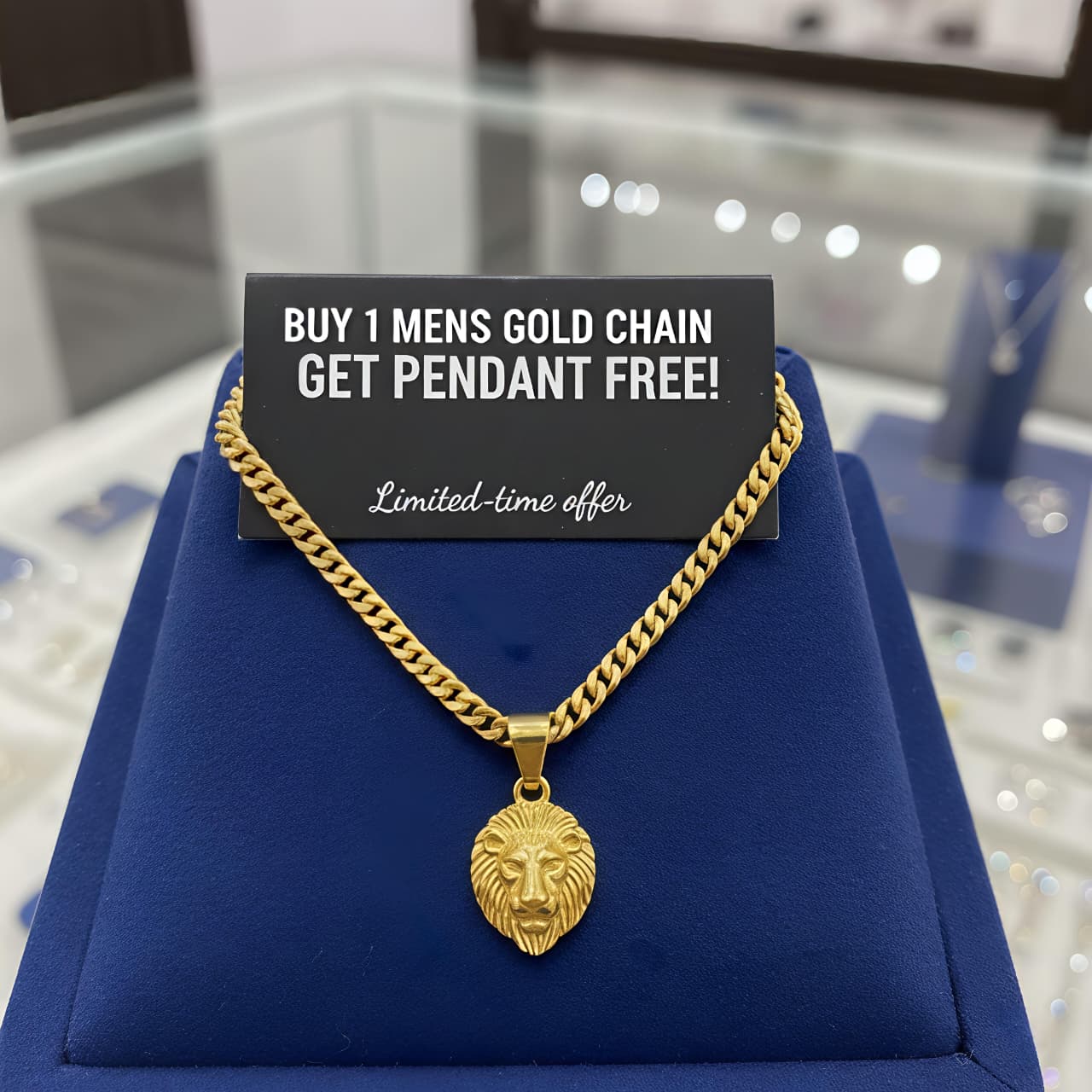 PREMIUM QTY,LOOK LIKE REAL GOLD,1 GRAM GOLD PLATED CHAINS,GET PANDANT FREE,BUY NOW LIMITED STOCK.